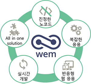 WEM은 프로그래밍 지식이 없어도 User 가 직접 Desktop 또는 Mobile장치에서 사용하고자 하는 엔터프라이즈급 Application을 구축할 수 있는 강력한 No-Code Application 플랫폼을 제공 합니다.
